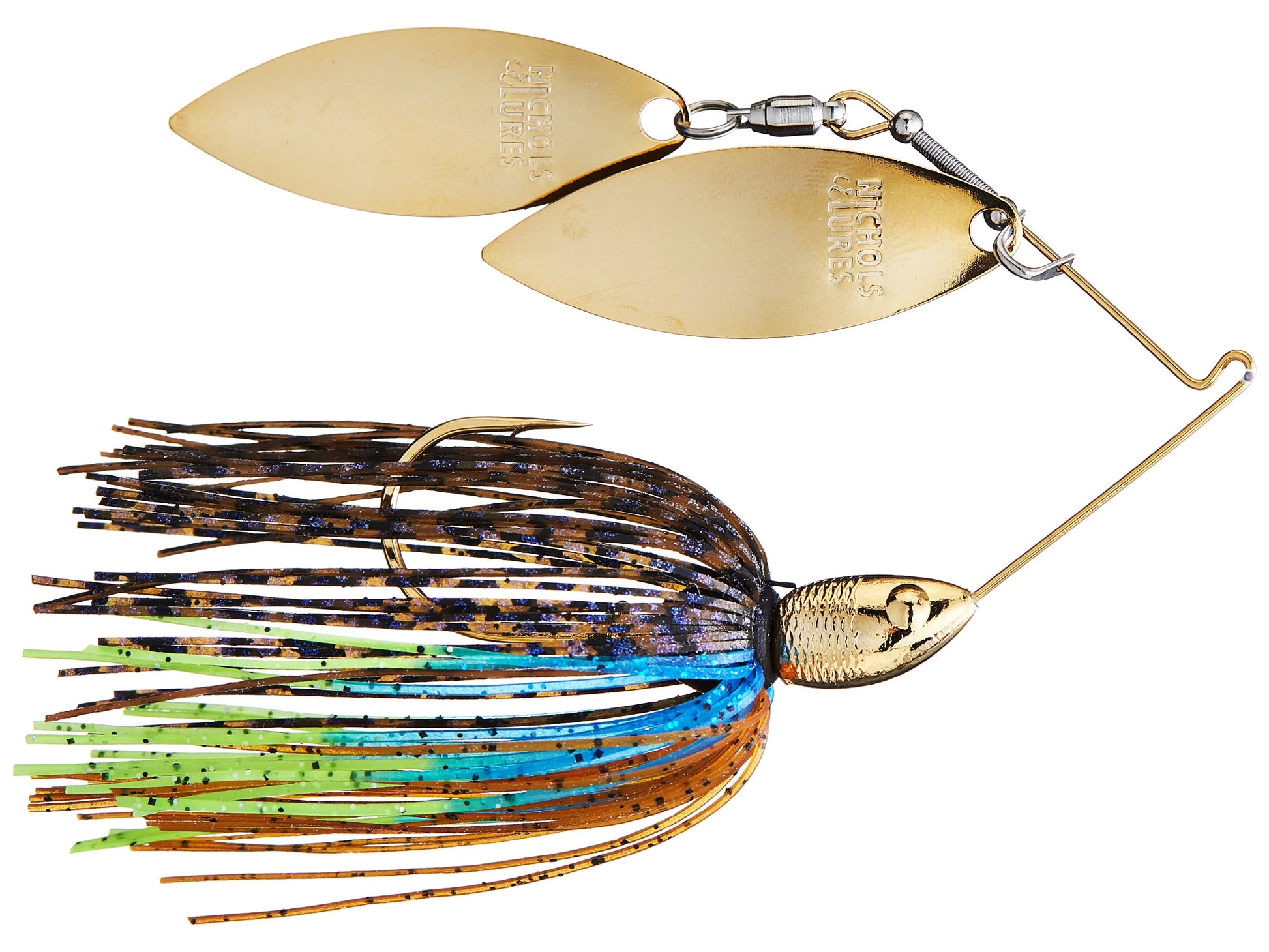Featuring premium 24k-gold and nickel-plated finishes for added appeal and exceptional durability, the Nichols Catalyst Double Willow Spinnerbaits are engineered with G3 level curvature to make them the pinnacle of spinnerbait form and function. Built with two custom Nichols willow blades to deliver a wealth of flash and attraction, the Catalyst Spinnerbait is backed by a strong and razor-sharp Owner hook for seamless hooksets and long-lasting performance.