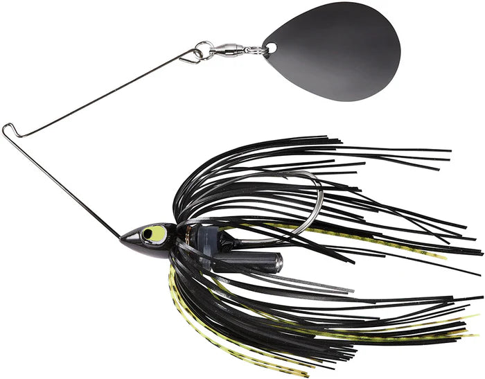 The War Eagle Night Time Spinnerbait features a single, large, black Colorado blade that produces a heavy thump to call in hunting nighttime bass. A dual chambered rattle provides additional fish attracting noise, and custom hand tied skirts add additional bulk and lifelike movement to the presentation. A premium Sampo swivel and super stainless wire help increase the blade's vibration and thump, and a super sharp Mustad NeedlePoint Hook seals the deal. Made in America using only quality materials and components, the War Eagle Night Time Spinnerbait is what you want tied on when the lights go out.